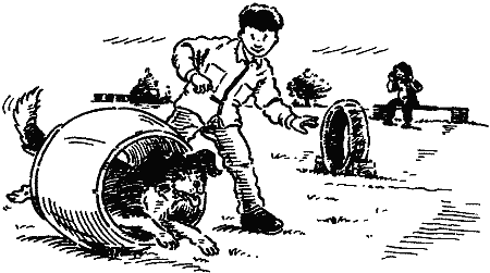 Вначале Сэм выглядел несколько озадаченным, не понимая, чего от него хотят, но Нил пробежал с ним всю эстафету, показав, где и что надо делать. Пес схватывал все на лету. Проявив невероятные чудеса сообразительности, он тут же проделал все то же самое в одиночку. Для него это была лишь занимательная игра.