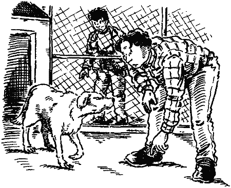Боб спокойно стоял посреди вольера. Не переставая тихо и ласково что-то говорить Сэнди, он осторожно засунул руку в карман и извлек оттуда кусочек печенья. Затем он медленно наклонился и, не сводя глаз с собаки, положил его на пол.