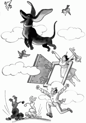 Откуда-то взялись Король и Принц. Они глядели вверх и втягивали носами воздух. Им тоже хотелось летать. Бух! Точно тяжелые мешки, они плюхнулись на землю.