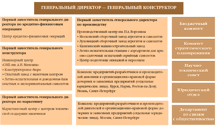 — С самого начала я поставил вопрос так: хоть мы и государственное унитарное предприятие, но нам необходимо выстроить нормальную корпоративную систему управления. Новая организационная структура (см. схему 2) предполагает как вертикальную интеграцию для каждой производственной программы, так и интенсивные горизонтальные связи на всех уровнях по вопросам общего управления, производства, маркетинга и финансов.