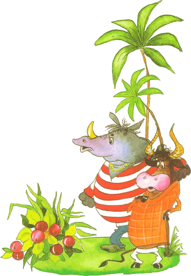 И вскричал Гиппопотам:«Что за стыд, что за срам!Эй, быки и носороги,Выходите из берлоги И врага На рогаПоднимите-ка!»Но быки и носорогиОтвечают из берлоги: «Мы врага бы На рога бы,Только шкура дорога,И рога нынче тоже не дешевы»