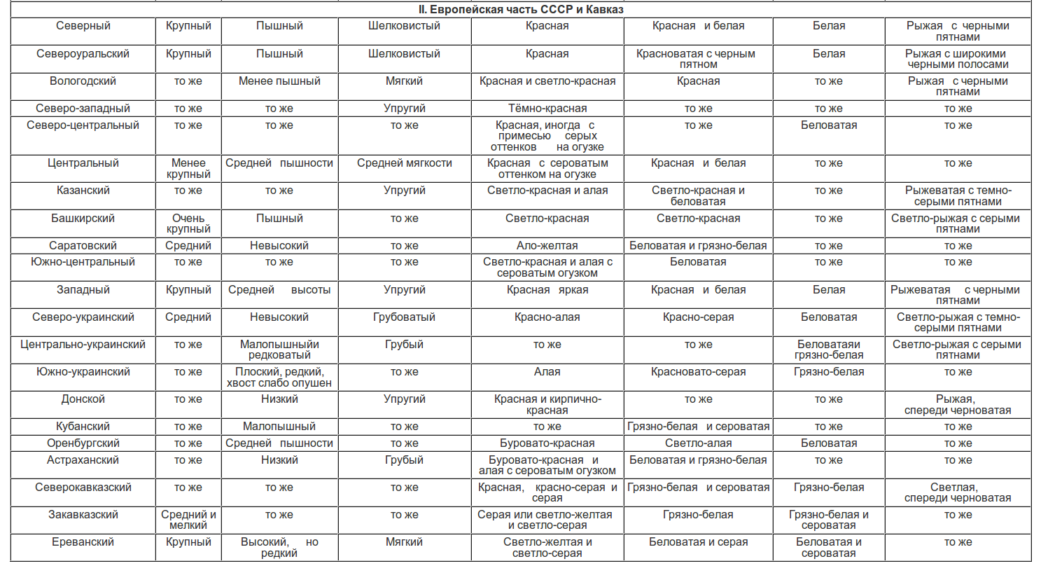 Шкурки зимнего убоя полноволосы, с густой ровной остью и густым пухом по всей площади. Мездра сравнительно тонкая и чистая. Допускается легкая синева не более как на 10 сантиметров от края огузка.