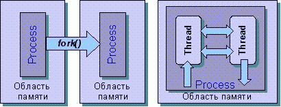 Рис. 16.1.Полновесные процессы и нити (потоки управления)