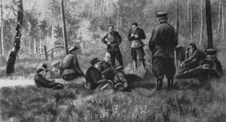 Мои товарищи во главе с Алексеем Ильичем Корневым, партизаном времён гражданской войны, ушли в Спадщанский лес за несколько дней до прихода немцев в Путивль. Им было поручено наблюдать за нашей базой и не допускать [10] проникновения в лес немецких парашютистов, которых противник сбрасывал в окрестных местах.