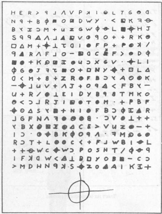 Кодограмма из 340 символов, полученная инспектором Тоски 8 ноября 1969 года