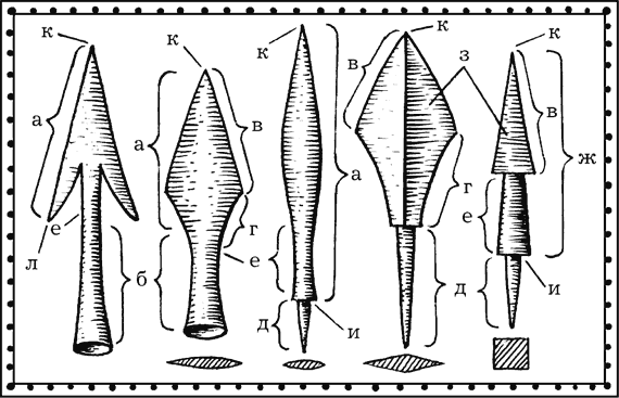Художники почему-то больше всего любят «приделывать» к стрелам своих персонажей наконечники с двумя заострёнными шипами, оттянутыми назад. Вероятно, предполагается, что у таких наконечников наиболее грозный вид. Между тем в специальной литературе о древнеславянских луках и стрелах можно найти (было бы желание) подробнейшее описание… ста шести типов железных и восьми типов костяных наконечников, бытовавших в разные времена у славян. О каждом из этих типов написано, в какие века и в каких местностях он применялся и для какой именно цели. Какое подспорье и для романиста, и для иллюстратора! Почему не воспользоваться?..