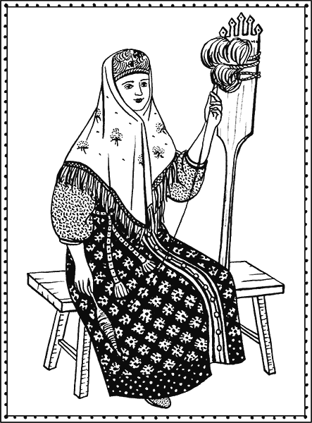 Что же касается наиболее отдалённых времён, – мы уже знаем, что наряду с «мужскими домами», где мужчины рода внушали мальчикам различные чисто мужские премудрости, мистические и повседневные, у древних славян существовали и «женские дома», где старшие женщины обучали девочек женской магии и ремеслу, в том числе прядению и ткачеству. Слова «магия» и «ремесло» стоят здесь рядом по праву. Ведь прядильщица или ткачиха (как и кузнец, строитель, гончар…) создаёт форму (нить) из бесформенного (комок волокна), определённым образом «организует пространство», заполняя пустое место тканью, а значит, деятельно участвует в длящемся «сотворении мира».