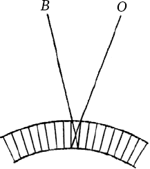 У некоторых насекомых имеются следующие приспособления для оценки направления лучей и получения зрительных образов (рис. 19). На сетчатой оболочке, образованной нервными окончаниями, расположены, как мозаика, мелкие конусы (наподобие сотов). Стенки этих конусов покрыты темным окрашенным веществом, поглощающим свет так же, как поглощает его черный матовый лак внутренних стенок зрительной трубы. На дно такой конусообразной ячейки могут попадать только лучи, ограниченные линиями В и О. На дно другой ячейки попадут лучи из другого участка. В результате на сетчатке получается мозаичное грубое изображение предмета, по которому насекомое может узнавать его формы.