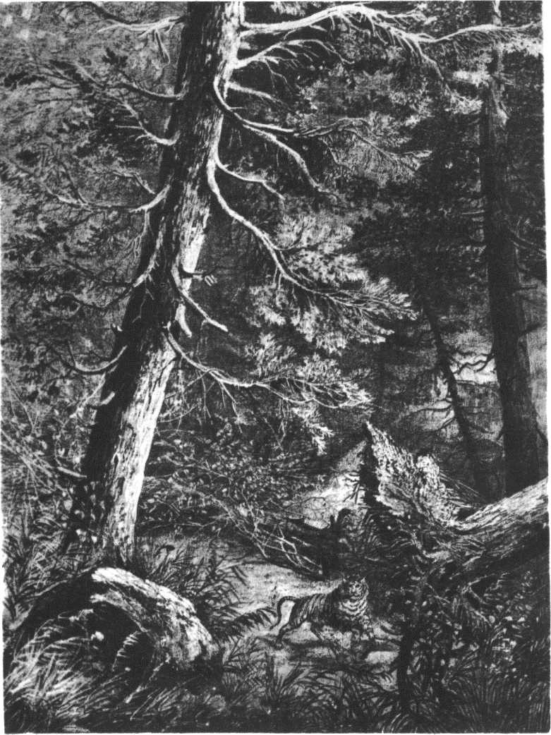 В Буреинской тайге. Рисунок из атласа экспедиции 1855 — 1859 гг.