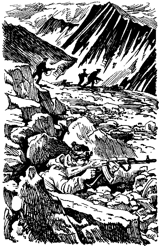 И вот Кадыр-хан добрался до валуна, за которым лежал реактивный ранец. Рухнув на колени, он нащупал уголок пленки, потянул его на себя, очистил аппарат от щебенки. Путь к спасению был открыт. Теперь оставалось спокойно подпустить поближе врага, уложить его метким выстрелом и улететь туда, к родным ледникам.