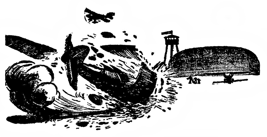 Маленький самолет устремился вверх. На высоте сотни футов его круто занесло вбок, так что у зрителей душа в пятки ушла, и вдруг он описал мертвую петлю и ринулся вниз, прямо на них. Мяус промчался над ними вниз головой на бреющем так низко, что Зинсер ничком бросился наземь. Джек и Молли стояли как истуканы и смотрели остановившимися глазами. На полторы нескончаемые минуты все вокруг заволокла густая туча пыли. Потом они опять увидели самолет уже на высоте полутораста футов, он нелепо болтался из стороны в сторону.