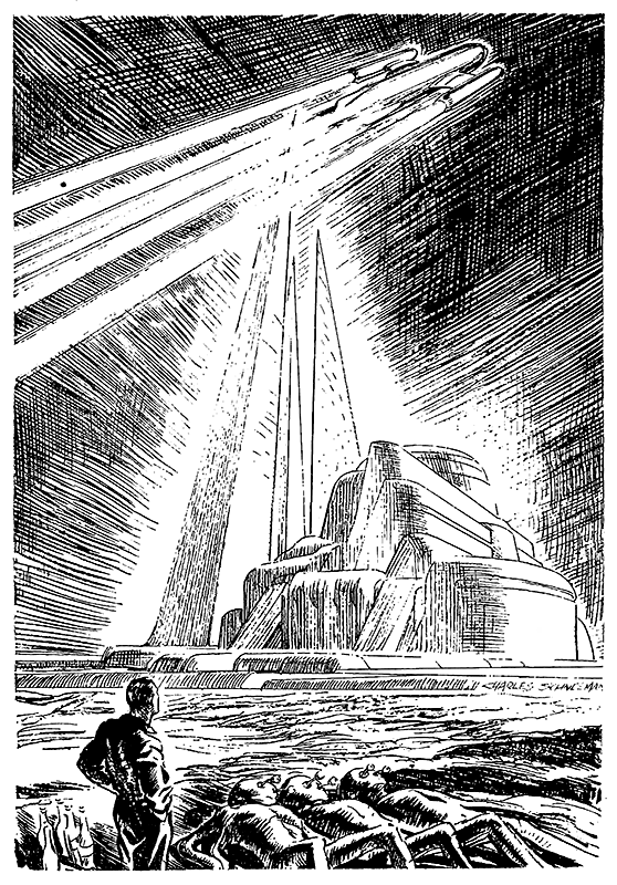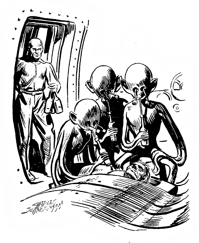 Слимми и Белл вынесли безжизненные тела марсиан наружу и уложили их на песок возле корабля.