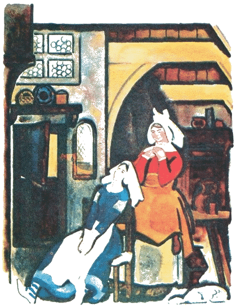 Так прожила она некоторое время у госпожи Метелицы, да вдруг запечалилась и поначалу сама не знала, чего ей не хватает; но, наконец, она поняла, что тоскует по родному дому, и хотя ей было здесь в тысячу раз лучше, чем там, всё же она стремилась домой. Наконец она сказала старухе: