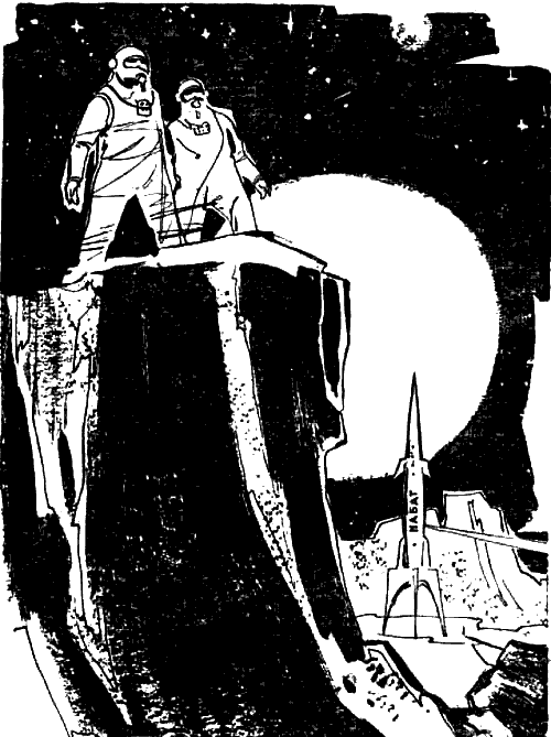 Люди обследовали планету. Они преодолели уже горный хребет и вышли к широкой долине. Покров ее был мягче. Долина вела куда-то далеко, на сотни километров, как свидетельствовали инфракрасные локаторы. В самый раз было использовать вездеход. Павел дважды говорил Бурмакову, что неплохо было бы облегчить себе передвижение. Но тот делал вид, что не понимает его. Топлива, а значит и жизни, на корабле оставалось уже только на пять месяцев — 150 земных, или около 24 местных суток. И он не решался сократить этот и без того короткий срок, так как не знал, принесет ли поездка на вездеходе пользу. Прежде чем отправиться в путешествие, нужно было решить топливную проблему.