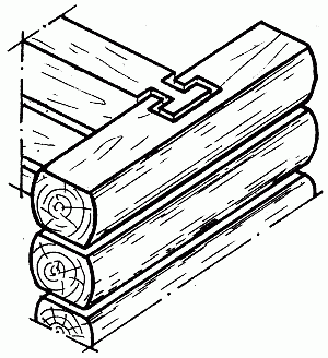 Затем, уложив второй венец, сделайте Т-образные вырубки под пазы для крепления внутренних стен. На концах брусьев и толстых досок сделайте Т-образные шипы. Теперь при возведении сруба чередуйте такое крепление через один венец, чтобы стены оставались прочными и при усадке не образовалась трещина (рис. 14).