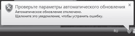В обеспечении безопасности компьютера участвуют специализированные службы и программы. Важнейшие из них находятся под контролем Центра обеспечения безопасности. Этот компонент Windows отслеживает стабильность работы средств защиты и в случае их отключения или изменениях в настройках, не соответствующих норме, уведомляет пользователя о возникших проблемах и предлагает вмешаться для восстановления нужного уровня защиты. Сообщения Центра обеспечения безопасности появляются на всплывающих подсказках в области уведомлений (рис. 7.11). Их содержание зависит от того, с каким из инструментов защиты возникли неполадки.