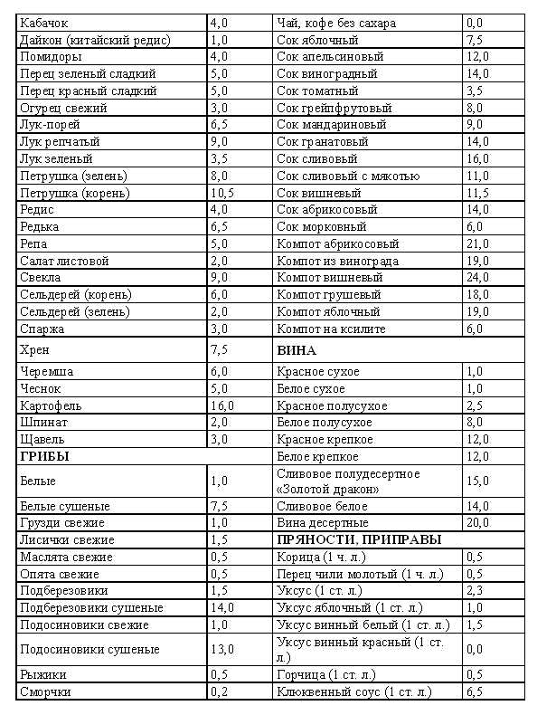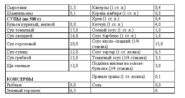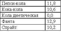 Стоимость сильногазированных напитков также можно подсчитать в таблице условных единиц (100 г).
