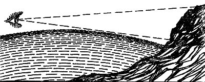 Плохо плавающие, отплывшие от берега на расстояние 50—100 метров, не сталкиваются со зрительными иллюзиями. А вот совершающие далекий заплыв должны учитывать, что взгляд на берег издали с уровня водной поверхности оставляет обманчивое впечатление: берег кажется более узкой полосой и более удаленным, чем на самом деле. В этом проявляется оптический эффект кривизны водной поверхности земного шара, которая становится заметной, если отплыть на 2–3 километра от берега.
