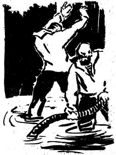 На следующее утро я и Анатолий принялись откачивать воду из трюма. Мы работали два часа. Очень устали. Тело покрывалоеь неприятным холодным потом. Часто глаза застилала белесая пелена. Сердце билось где-то у гортани.