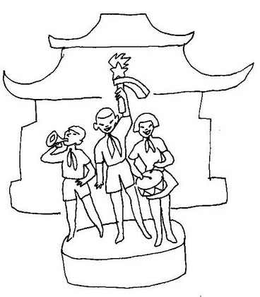 Помимо исторических достопримечательностей, которыми славен город Хонгчжу, я видел там одну достопримечательность вполне современную — дом пионеров. Если не знать, что это дом пионеров, его можно было бы принять за какой-нибудь дворец императора или буддийский храм или за ещё что-нибудь супер-китайское: традиционная старинная архитектура — крыши, загнутые вверх по углам. Но не знать было невозможно. Перед зданием располагалась скульптурная группа из трёх пионеров. Один трубил в горн, другая (девочка) била в барабан, третий, в середине, самый хороший мальчик, высоко держал что-то важное и торжественное, наверно, честь китайского пионера.